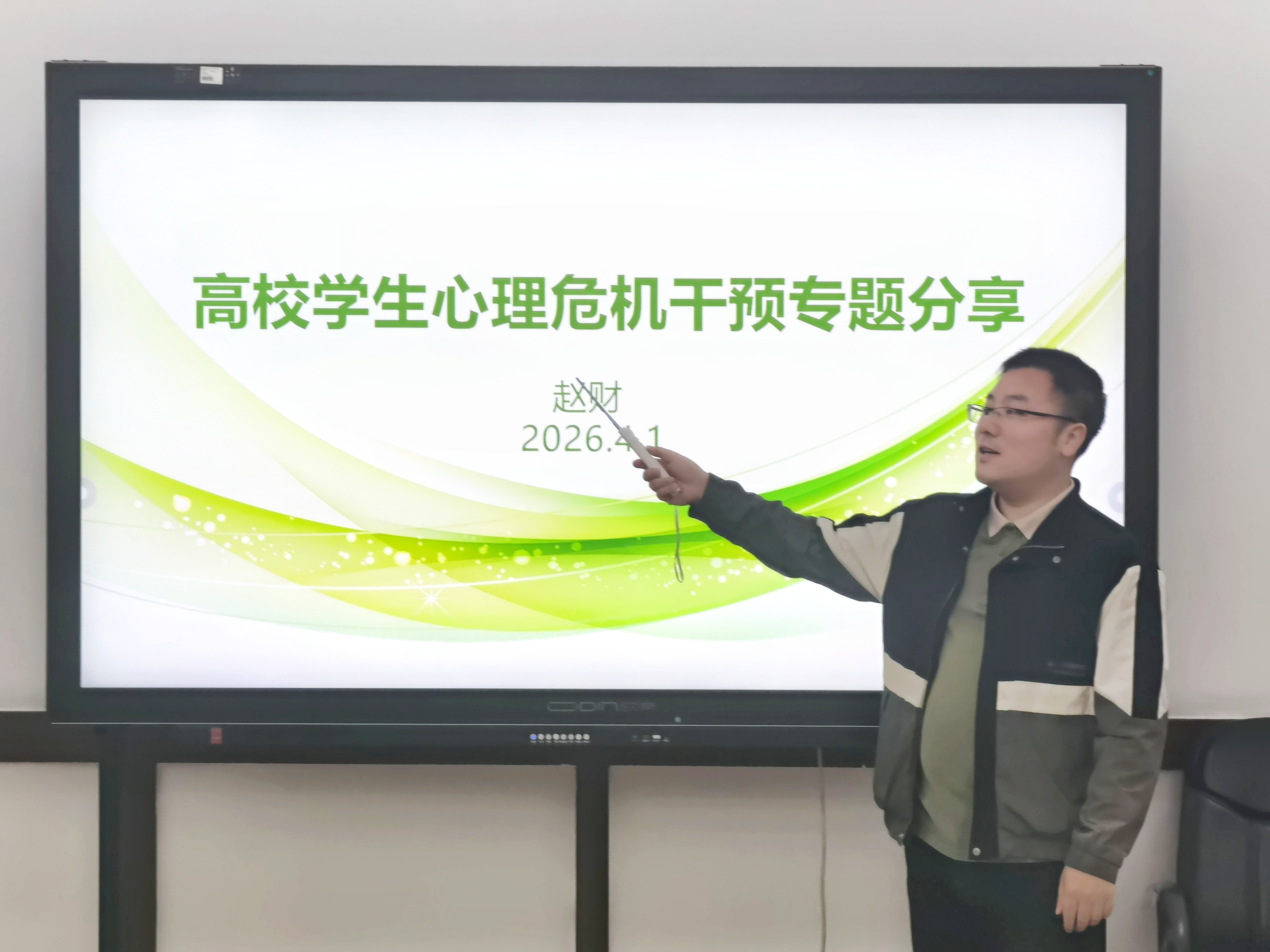 为深入贯彻落实国家关于学生心理健康工作的系列部署要求,切实提升辅导员心理育人与危机干预专业能力,筑牢心理健康安全防线,2026年4月1日,现代服务学院在世纪楼三楼会议室开展了“学习成果移植共享,明理精技护航成长——高校学生心理危机干预培训成果分享会”半月谈活动,由本次赴杭州参培的赵财老师作主题移植分享,院全体辅导员参与学习。