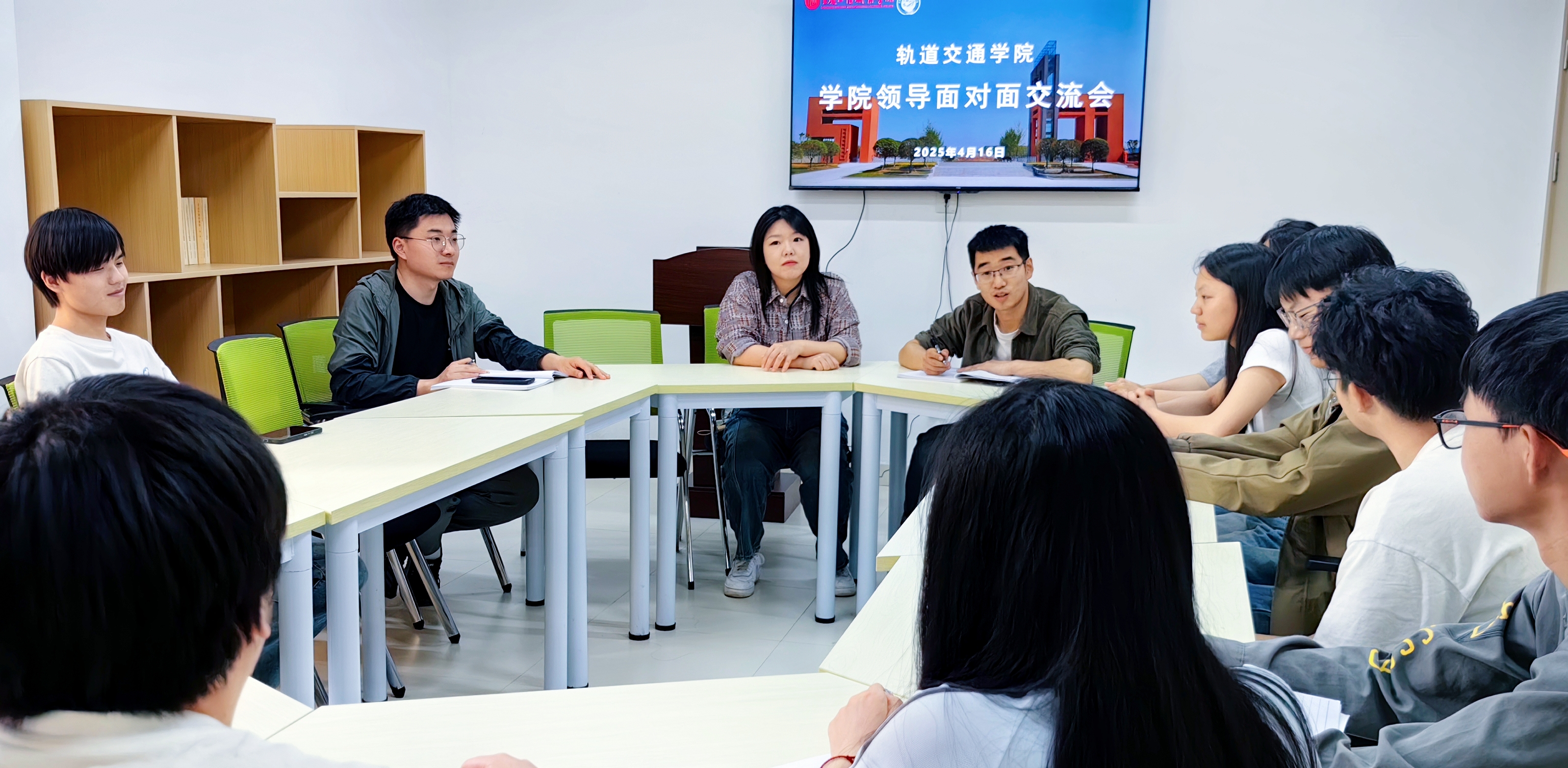 2025年4月16日,轨道交通学院在学生社区秀慧苑党团活动室召开第四期“学院师生面对面”交流座谈会。学院负责人李倩、学工干事及辅导员代表与24级铁道机车、轨道供电、铁道信号等专业学生代表深入对话,围绕教学管理、生活服务等议题展开交流,共谋解决方案。座谈会由学工干事李德成主持。