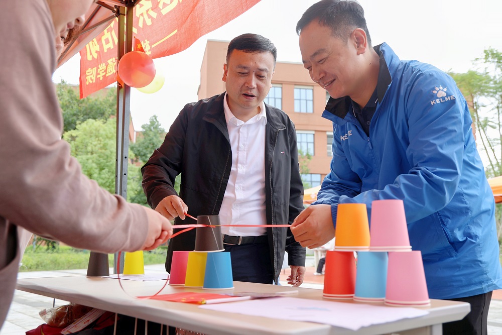 此外,“红映扇面”鼓励参与者以彩笔抒怀,在方寸扇面上描绘心中的家国图景;“同心筑塔”则通过团队合力操控装置搭建“红韵金字塔”,象征青年一代携手共筑民族复兴伟业的坚定信念。活动现场气氛热烈,青春活力与爱国情怀交融激荡,构成一道独特的校园风景线。