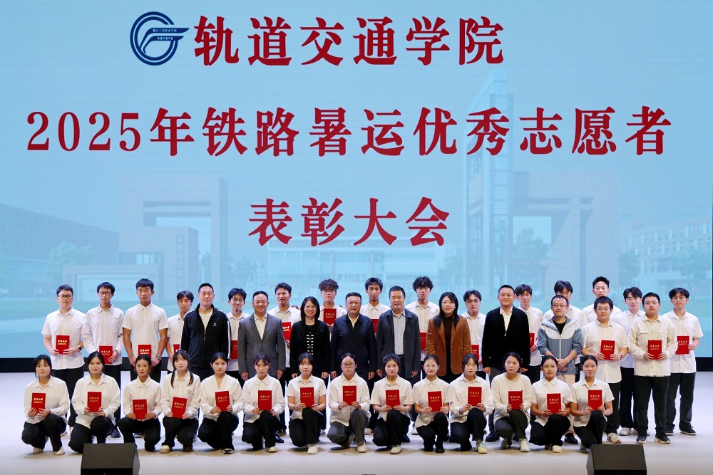 在这秋意正浓、丹桂飘香的金秋收获时节,轨道交通学院于2025年10月22日晚,在长寿校区大礼堂隆重举行了2025年铁路暑运(列车乘务)优秀志愿者表彰大会。此次大会旨在全面总结暑期运输志愿服务工作成果,表彰先进典型,弘扬“奉献、友爱、互助、进步”的志愿服务精神,进一步激发广大青年学子投身社会实践与志愿服务的热情和使命感。