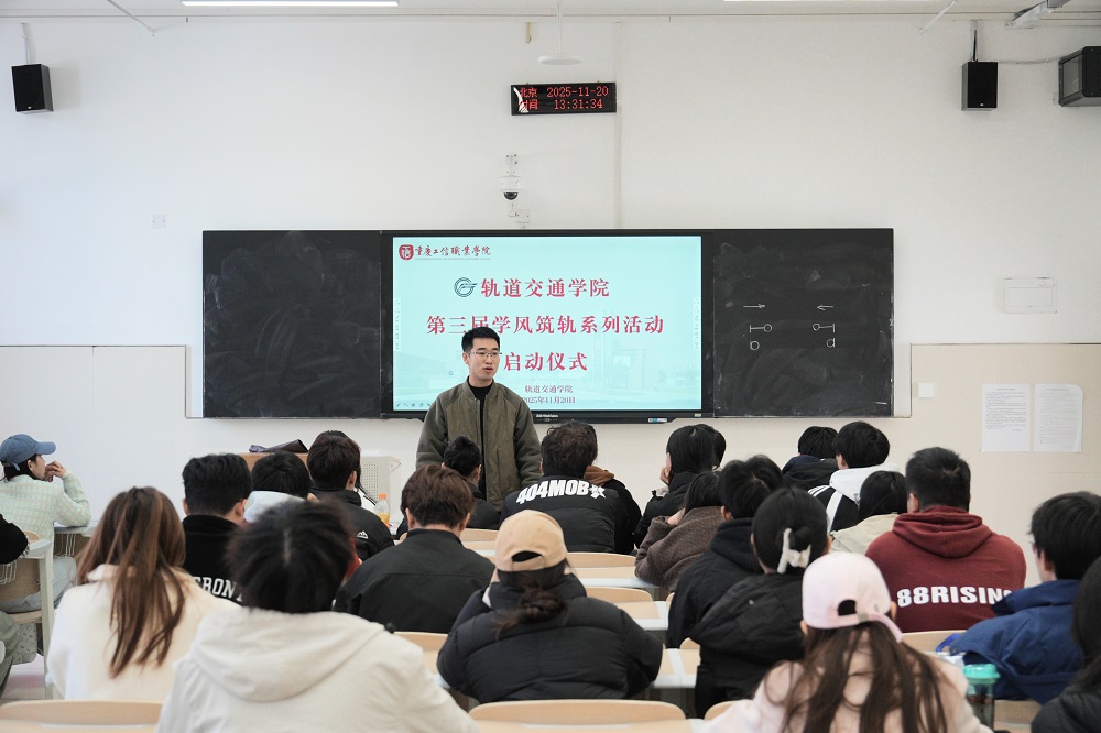 为深入贯彻学校“严谨笃学、知行合一”的学风建设理念,夯实育人基础,助力学生全面发展,11月20日中午,重庆工信职业学院轨道交通学院隆重举行了第三届“学风筑轨”学风建设动员大会。本次大会吸引了来自2024级与2025级共50个班级的学习委员参与,共同见证了这一重要时刻。