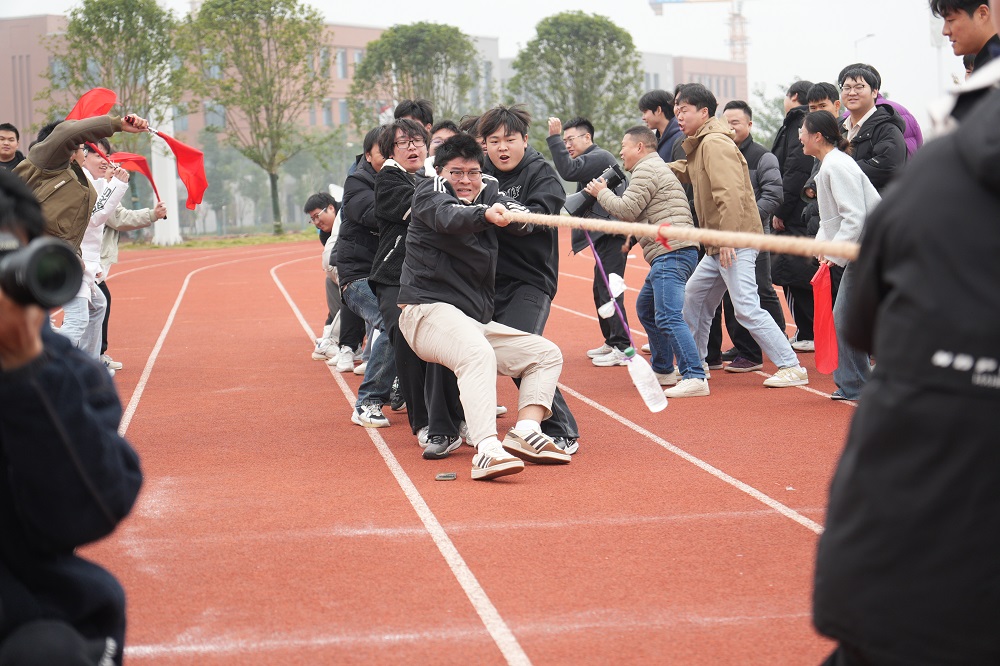 为丰富校园文化生活,增强学生体育锻炼意识,弘扬团结协作的集体主义精神,重庆工信职业学院长寿校区于11月10日在田径运动场成功举办拔河比赛。轨道交通学院积极响应、周密组织,以饱满的热情投身于这场力量与凝聚力的集体较量中。学工办主任艾钊、学工干事李德成、毛超及全体辅导员亲临赛场,全程为参赛学子加油助威,以温暖的陪伴与坚定的鼓励为“轨道健儿”注入信心与动力。