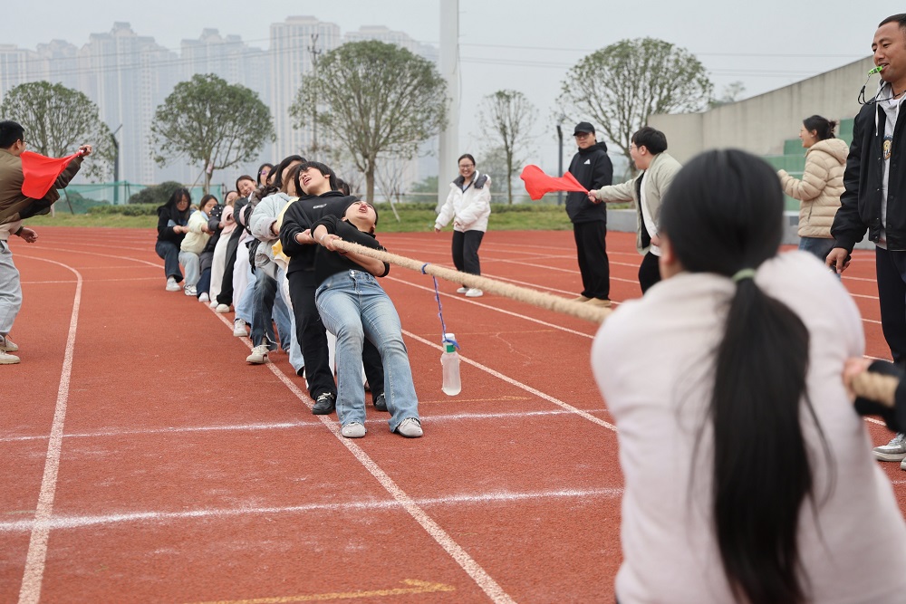 哨声划破长空,赛场气氛瞬间升温。参赛队员紧握绳索,步伐协调、动作一致;双脚稳扎地面,身躯后仰,构筑起一道坚不可摧的集体防线。汗水在冬日阳光下熠熠生辉,绳索在拉锯中铮铮作响。场边师生齐呼“稳住!加油!”的助威声与选手的呐喊声相互交织,汇聚成团结协作的动人乐章,驱散寒意、激荡热血。