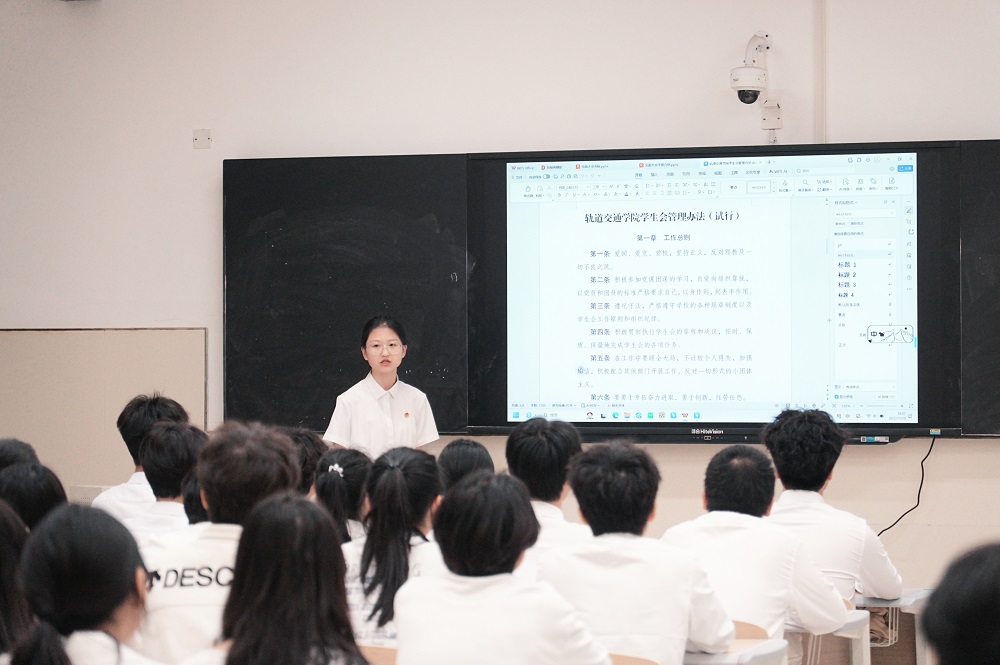 会议最后,主席团号召全体成员秉持“服务同学、引领成长”的宗旨,以制度化、透明化管理为准则,打造高效、温暖、有影响力的学生组织。全体成员一致表示,将团结协作、锐意进取,为轨道交通学院学生会建设贡献青春力量,共同书写新的篇章。