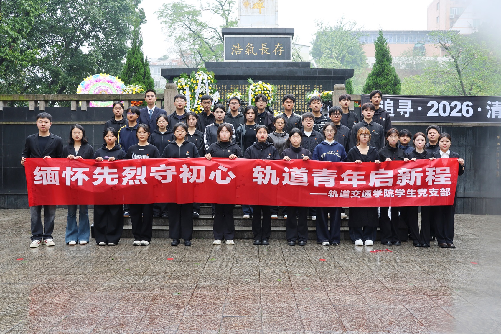 为缅怀革命先烈,传承红色基因,弘扬中华优秀传统文化,2026年4月3日,轨道交通学院组织优秀团支书及团员代表前往长寿革命烈士陵园,开展了以“春风寄哀思·清明祭先贤”为主题的清明祭奠活动。