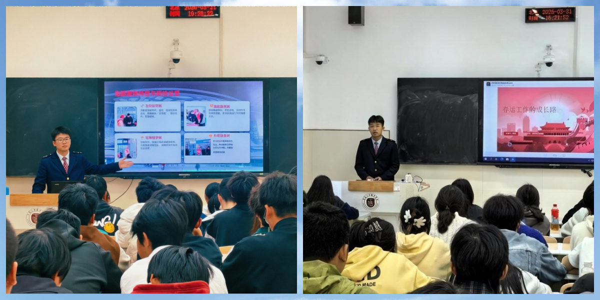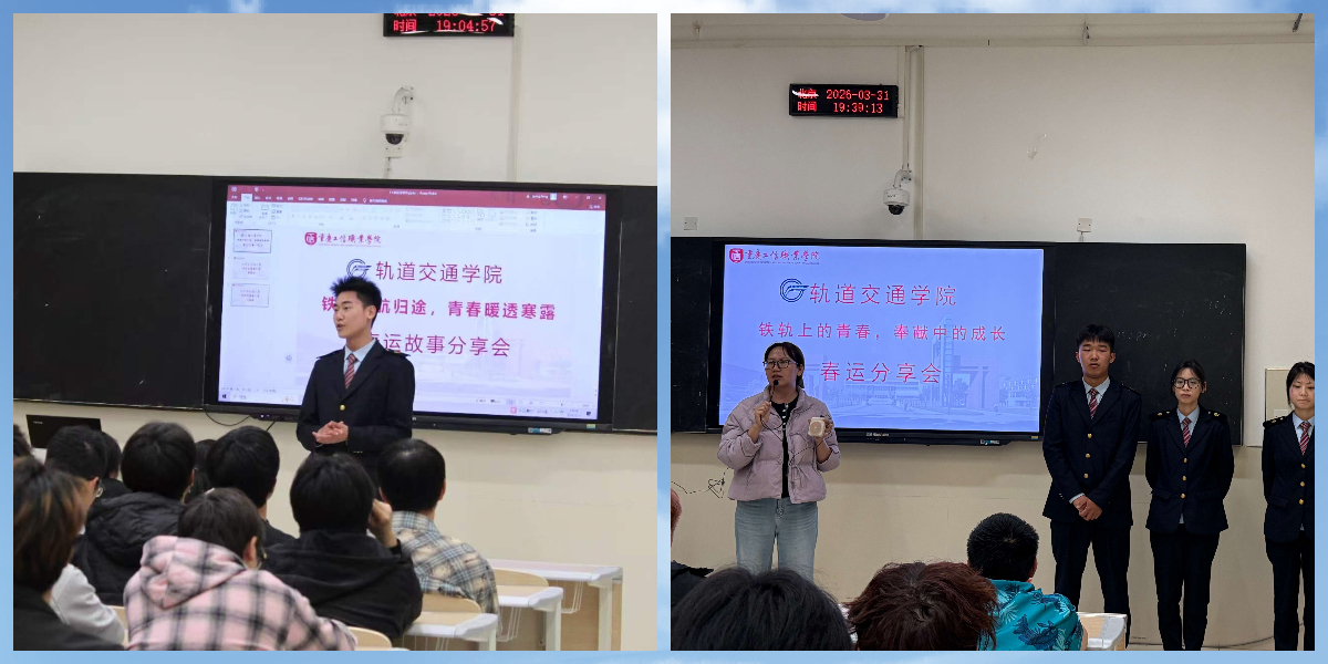 为传承志愿精神,厚植家国情怀,近日,轨道交通学院组织24级参与2026年铁路春运志愿服务的优秀代表走进各班级,开展“春运故事分享会”系列活动。活动由带队老师精心策划,旨在通过“身边人讲身边事”的方式,让春运志愿服务的感人故事与责任担当在青年学子中薪火相传,激励更多同学投身服务国家、服务社会的实践行列。