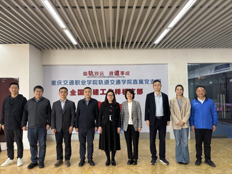 为深入推进学校“双高计划”建设,学习借鉴样板党支部建设的先进经验与典型做法,促进学院基层党支部标准化、规范化建设,轨道交通学院党总支书记马毅、副书记黄兰华及党支部相关负责人一行6人于4月13日下午前往重庆交通职业学院,开展样板党支部专题学习调研活动。重庆交通职业学院轨道交通学院党支部书记黄琴、副院长李泽等同志热情接待了我院一行。