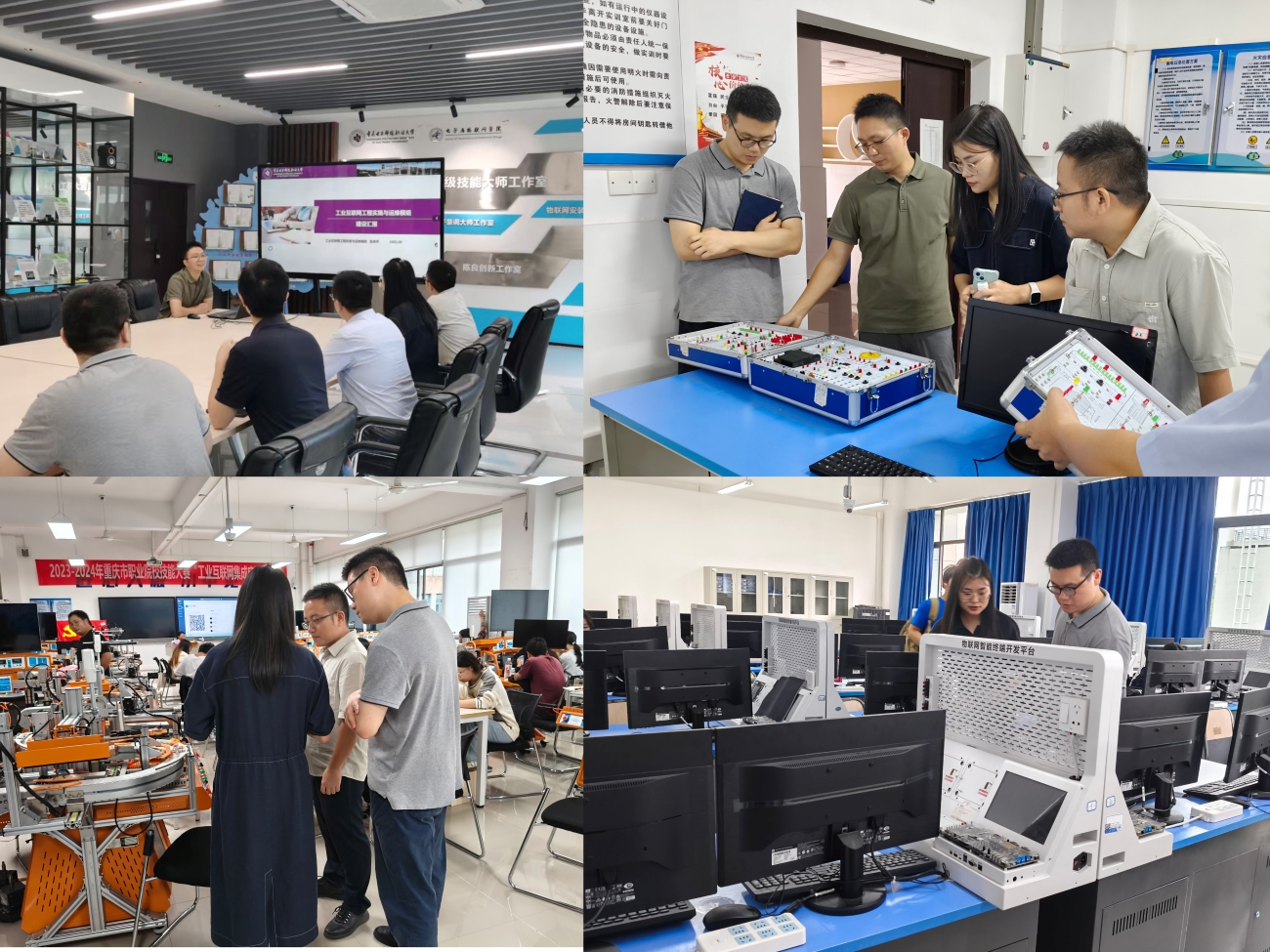 为推进专业实训条件建设,教师们前往重庆电子科技职业大学,实地调研工业互联网技术专业实训室建设情况。该校吴卓坪主任热情接待,并详细介绍了实训室的空间布局、设备配置及实训教学模式,为我院后续推进工业互联网技术专业实训室建设提供了宝贵经验。