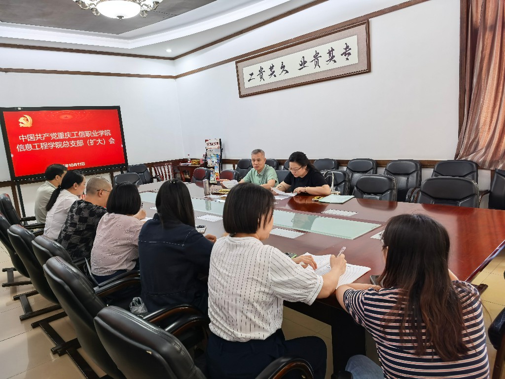10 月 11 日,信息工程学院党总支(扩大)会议在 3315 室召开。总支委员参会,各教研室主任列席。会议由党总支书记左磊主持。本次会议以“深学理论强根基、聚焦重点谋发展”为主题,通过多维度学习与议题研讨,为学院高质量发展明确方向、凝聚合力。