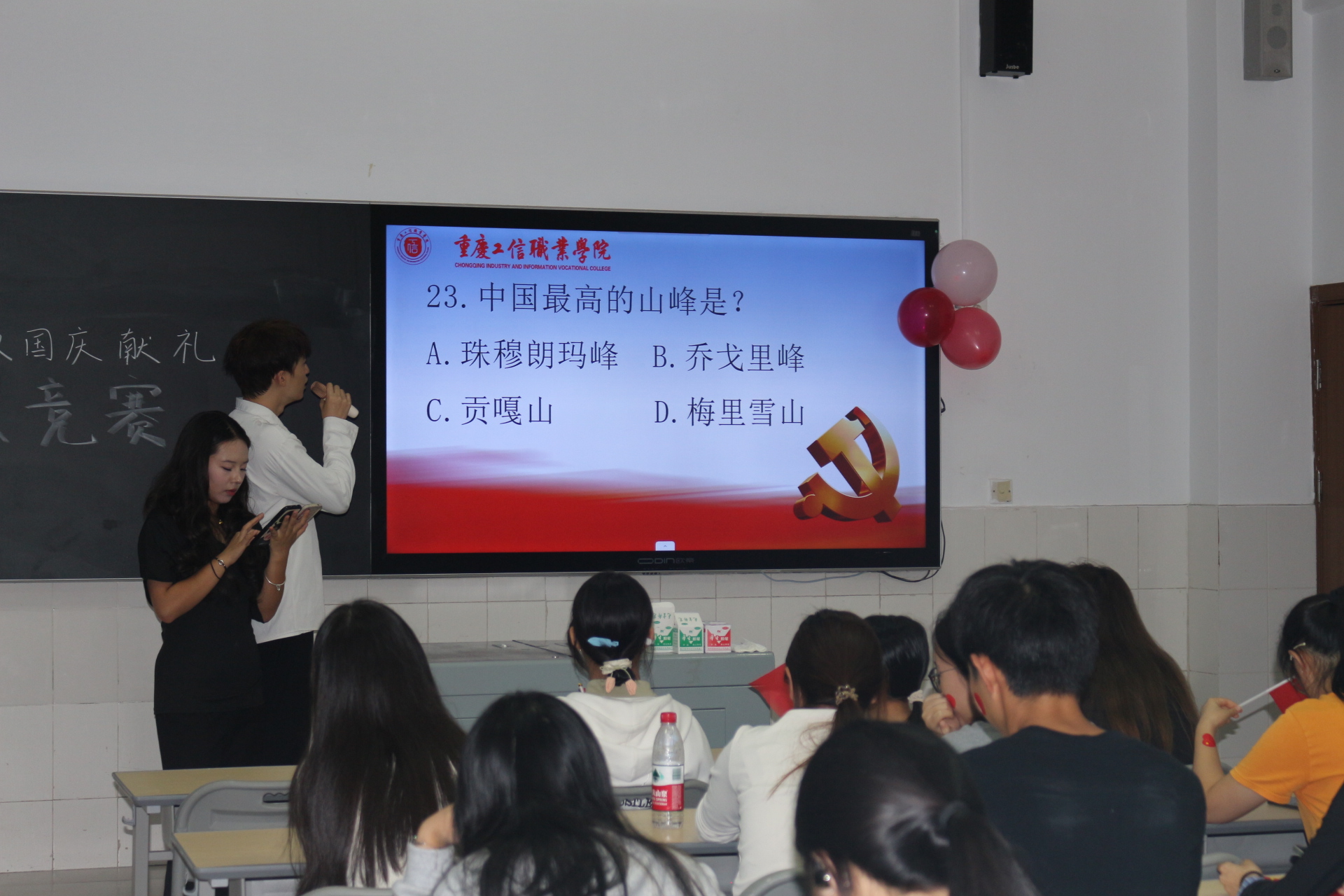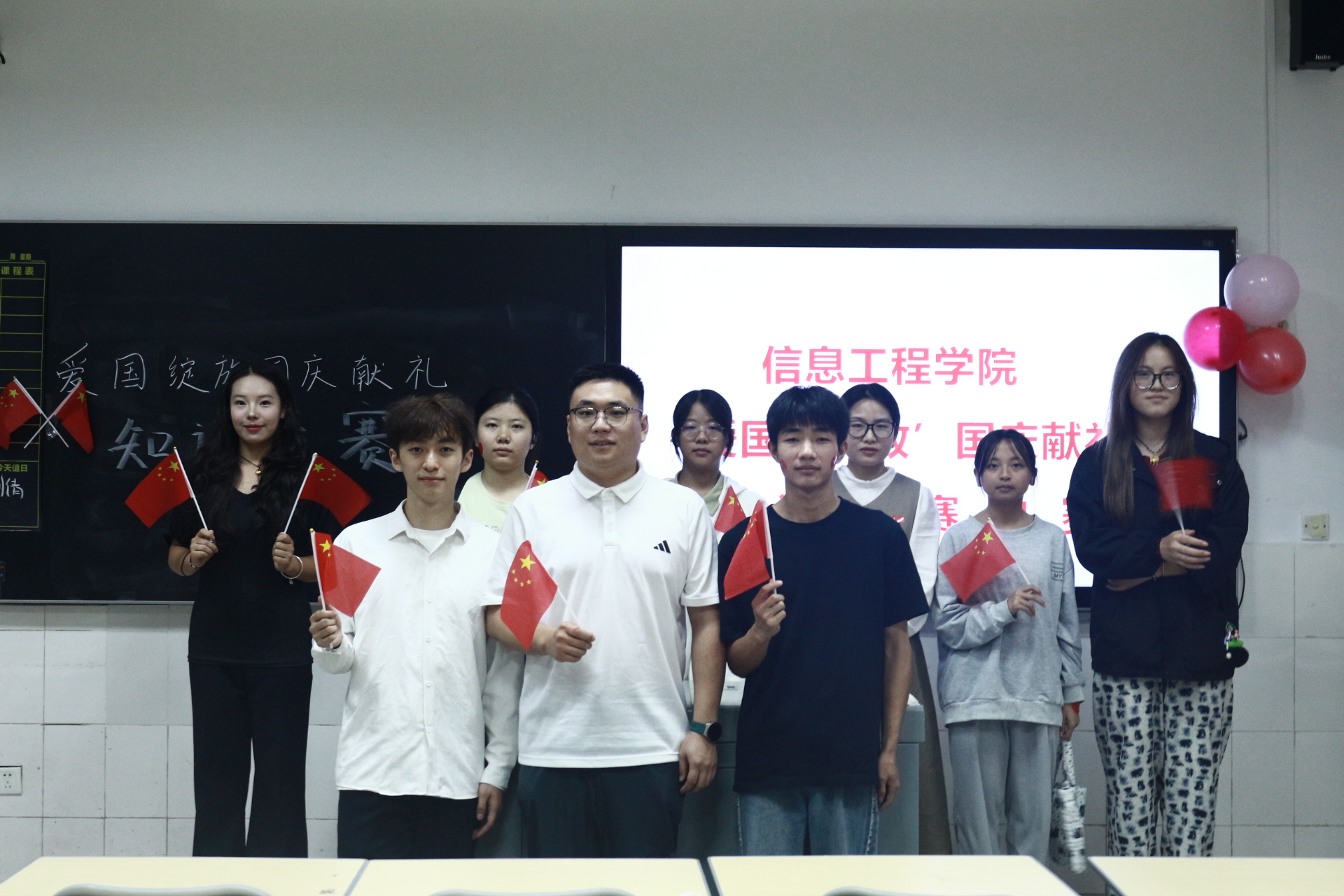 七十六载风雨铸辉煌,青春向党谱新章。为庆祝新中国成立76周年,由信息工程学院主办的“爱国·绽放”国庆献礼知识竞赛已圆满落下帷幕。本次活动成功点燃了全院学子的爱国热情与学习激情,为我们带来了一场精彩纷呈的思想与知识的盛宴。现在,让我们一起回顾这场比赛的精彩瞬间,共同见证荣誉时刻!