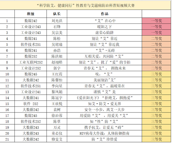 从作品征集、初评筛选到决赛展演,本次大赛不仅是一场创意的比拼,更是一次健康的倡议、一次责任的共鸣。赛事虽已落幕,但“科学防艾,健康同行”的理念已深入学子心中。信息工程学院将持续开展健康宣传教育,引导学生提升自我保护意识,携手共建健康、文明、包容的校园环境。