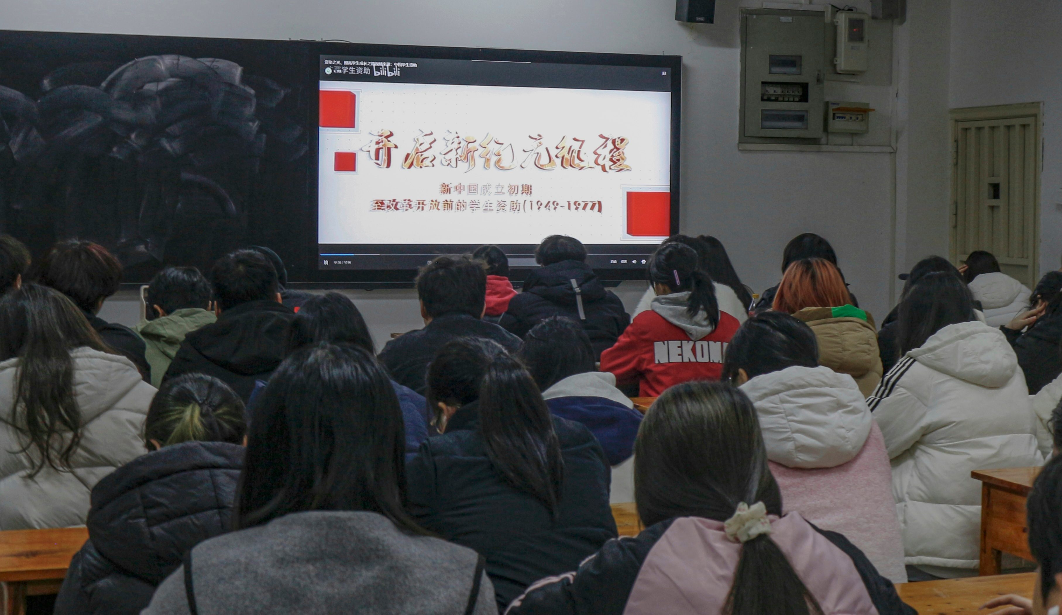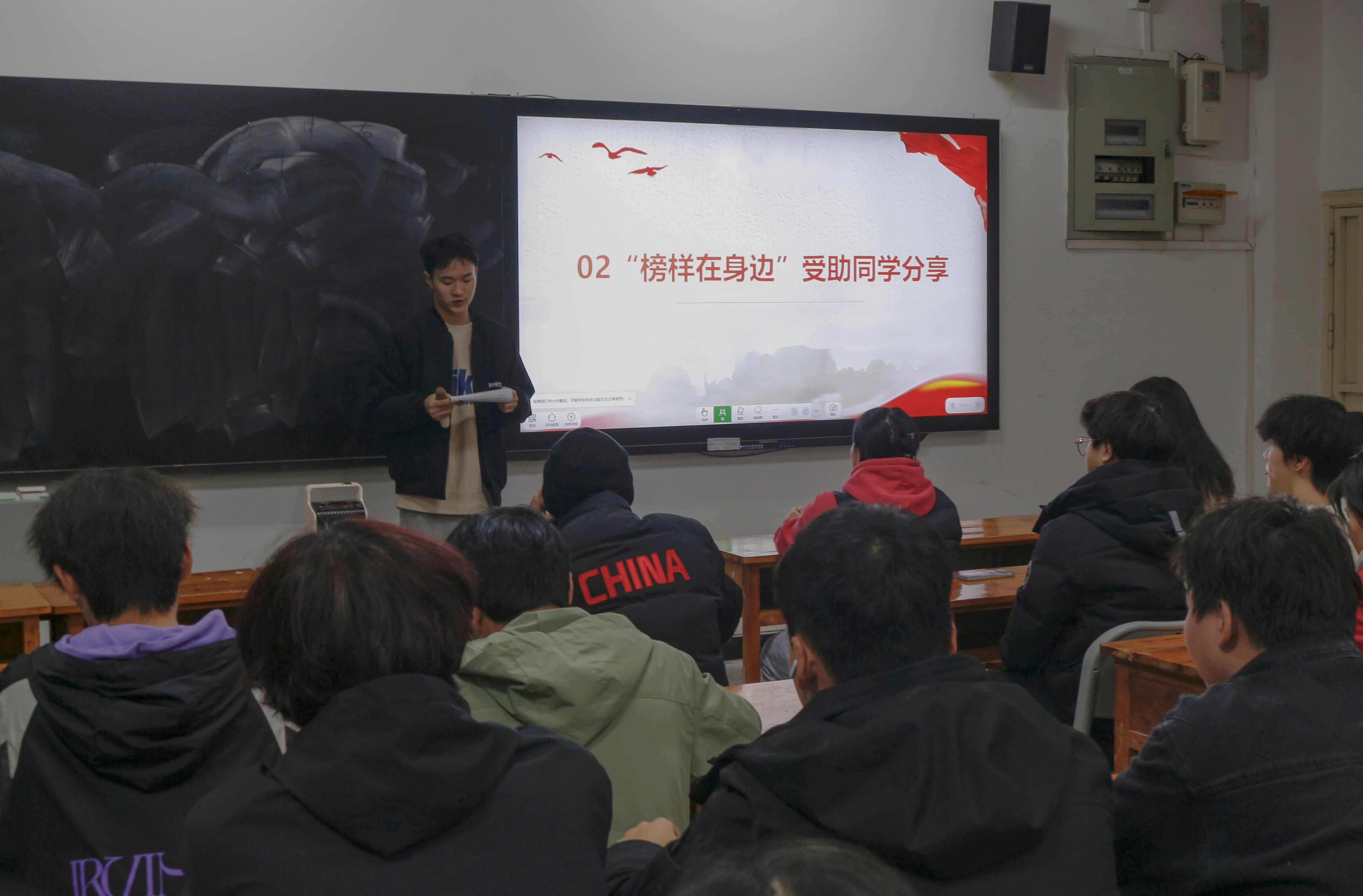 分享环节结束后,同学们共同观看了《资助之光,照亮学生成长之路》主题视频。该视频以真实感人的画面,展现了国家资助政策如何如阳光般温暖学子求学之路,进一步强化了“自强、感恩、奉献”的育人导向。