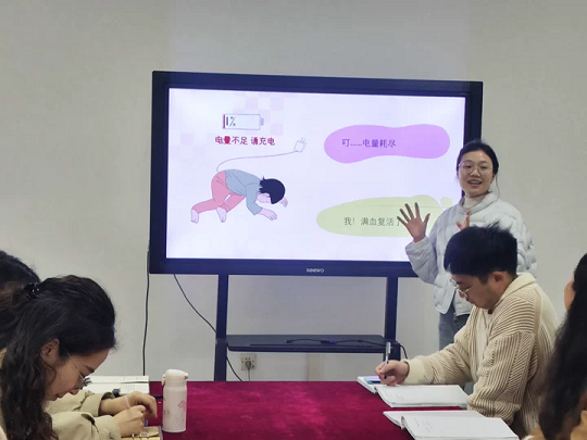 活动以“心理电量”互动环节开场,引导辅导员们通过手机电量图标的生动比喻,直观评估自身心理状态,在轻松氛围中开启对自我关爱的深度思考。