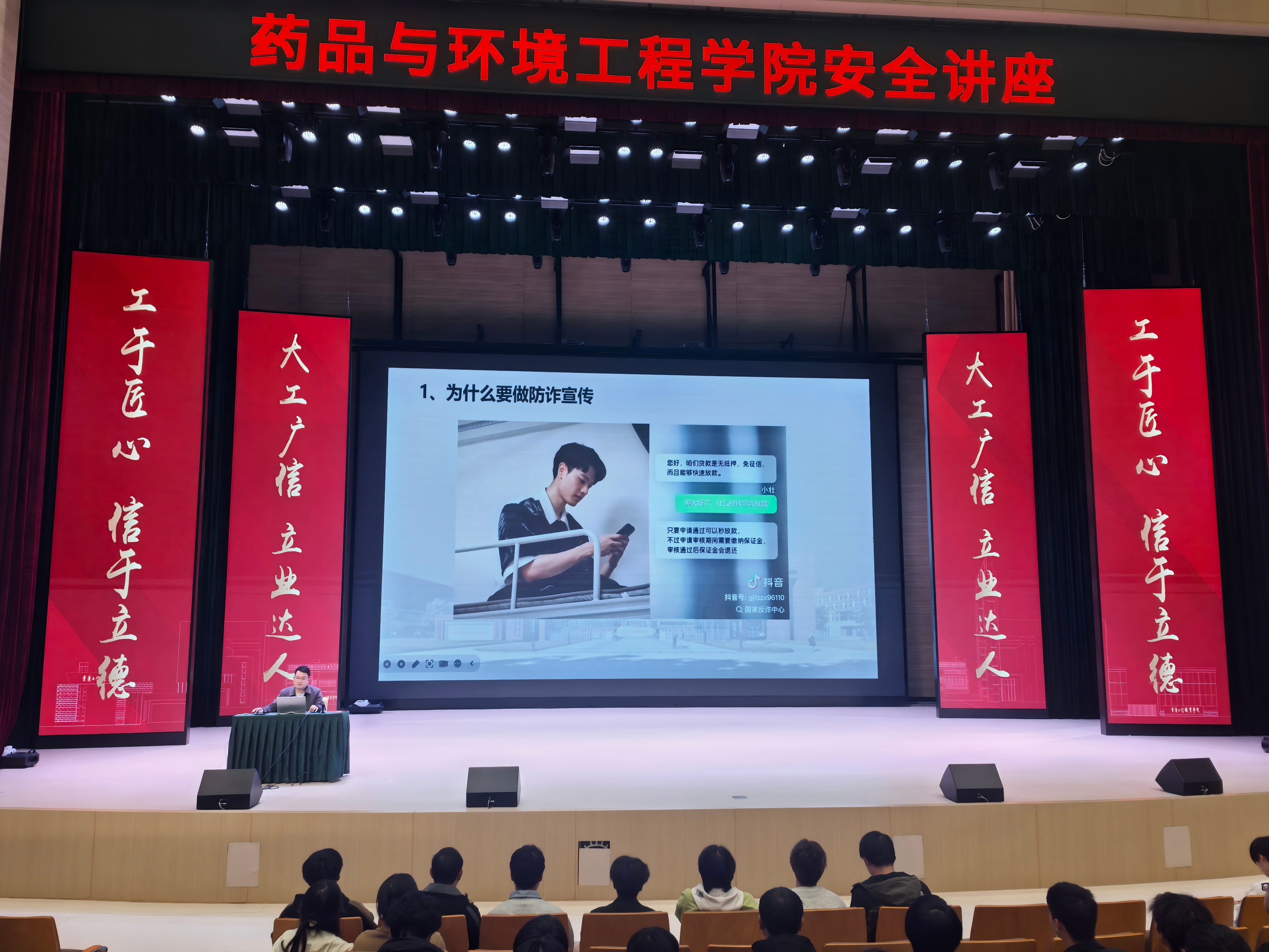 为切实增强学生安全防范意识,营造平安和谐的校园环境,11月6日晚,药品与环境工程学院在学校大礼堂举办学院安全讲座。本次讲座由邱凌川老师担任主讲,学院全体辅导员及在校大一、大二学生共同参与。