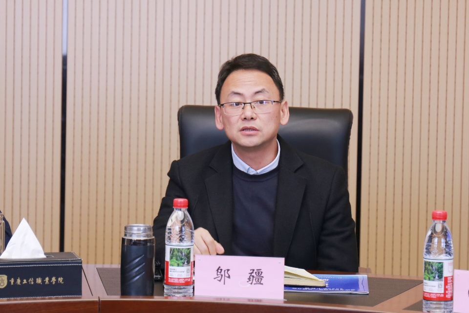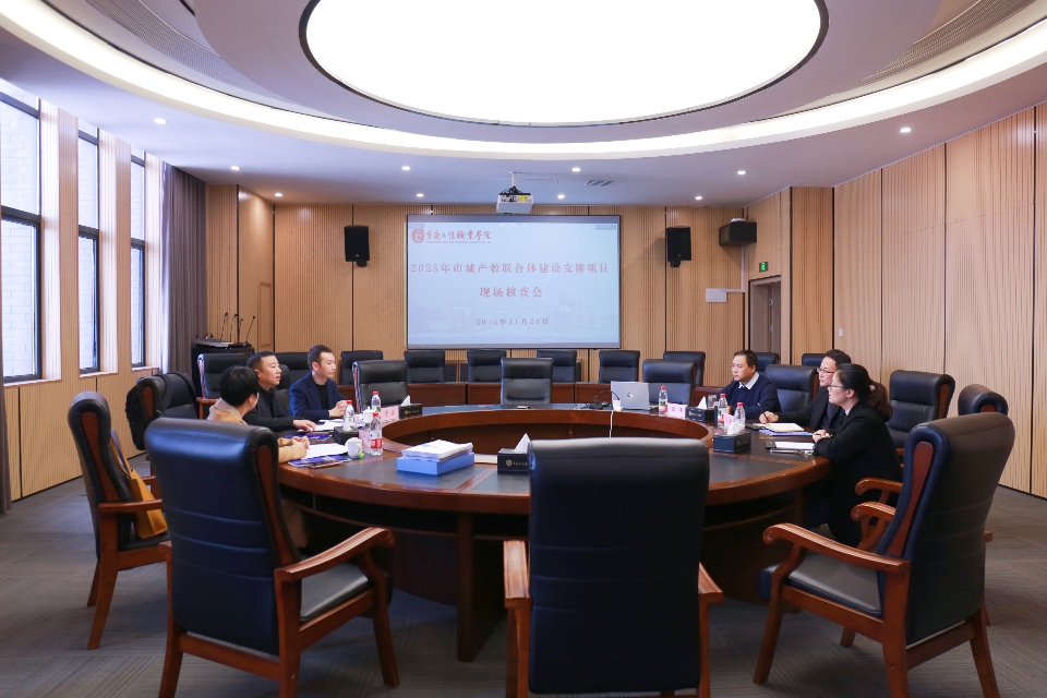为深入贯彻落实国家关于深化现代职业教育体系建设改革的战略部署,推动教育链、人才链与产业链、创新链有机衔接,2025年11月26日下午,2025年市域产教联合体建设支撑项目现场核查会在重庆工信职业学院长寿校区立德楼1317会议室隆重举行。此次会议旨在通过权威专家的现场“把脉问诊”,确保项目建设方向正、措施实、成效显,为区域经济高质量发展注入新动能。智能制造学院党总支书记邬疆、财务处副处长汤冬梅、产教融合办公室主任谭伟参加了本次会议。
