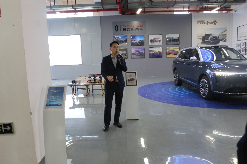 本次活动的一大亮点是赛力斯汽车带来的智能汽车技术深度体验。赛力斯汽车用户中心资深经理亲临现场,以问界M5、M7、M8、M9等系列旗舰车型为实物教材,为师生们带来了一场别开生面的技术讲解。他从智能驾驶系统的感知-决策-执行逻辑,到高效电驱平台的技术突破,再到HarmonyOS智能座舱带来的无缝人机交互体验,进行了深入浅出的剖析。师生们不仅能够静态观摩,更有机会坐进驾驶舱,亲身感受尖端科技赋予汽车的灵魂,极大地激发了同学们对智能制造领域的向往与学习热情。