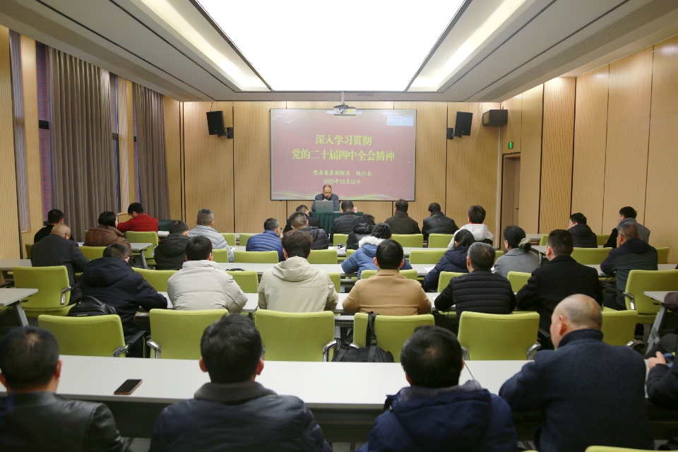 阮院长首先对全会的重大意义与核心精神进行了系统且深入的解读。他着重指出,于2025年10月20-23日在北京胜利召开的党的二十届四中全会,是在全球变局相互交织、中国式现代化向纵深推进的关键时期召开的一次具有里程碑意义的重要会议。全会认真听取并审议了相关报告以及“十五五”规划建议,为我国未来五年的发展精准指明了前进方向。因此,学习贯彻全会精神是当前最为重要的政治任务。