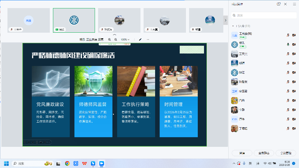 2月26日上午,智能制造学院全体管理干部借助钉钉会议召开2026年春季学期开学工作会议。会议围绕开学前准备工作、重点任务部署以及学院发展关键事项展开,会议由智能制造学院党总支副书记、副院长杨乐主持。