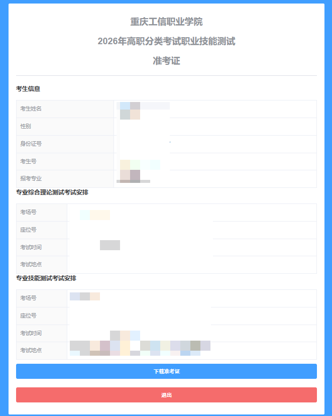 3、点击准考证下载,查看考试信息。