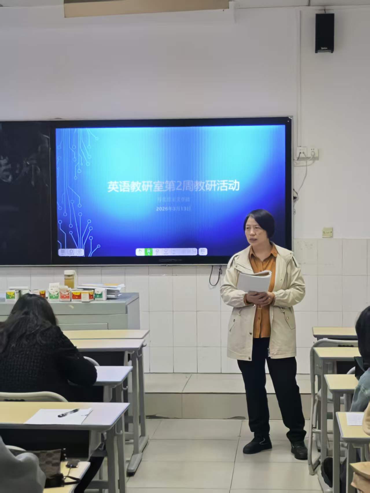 会议伊始,颜学平老师对开学初的教学工作进行了安排。她首先代表教研室感谢了部分主动承担高考班教学任务的教师,肯定了大家在关键教学岗位上的奉献与担当。
