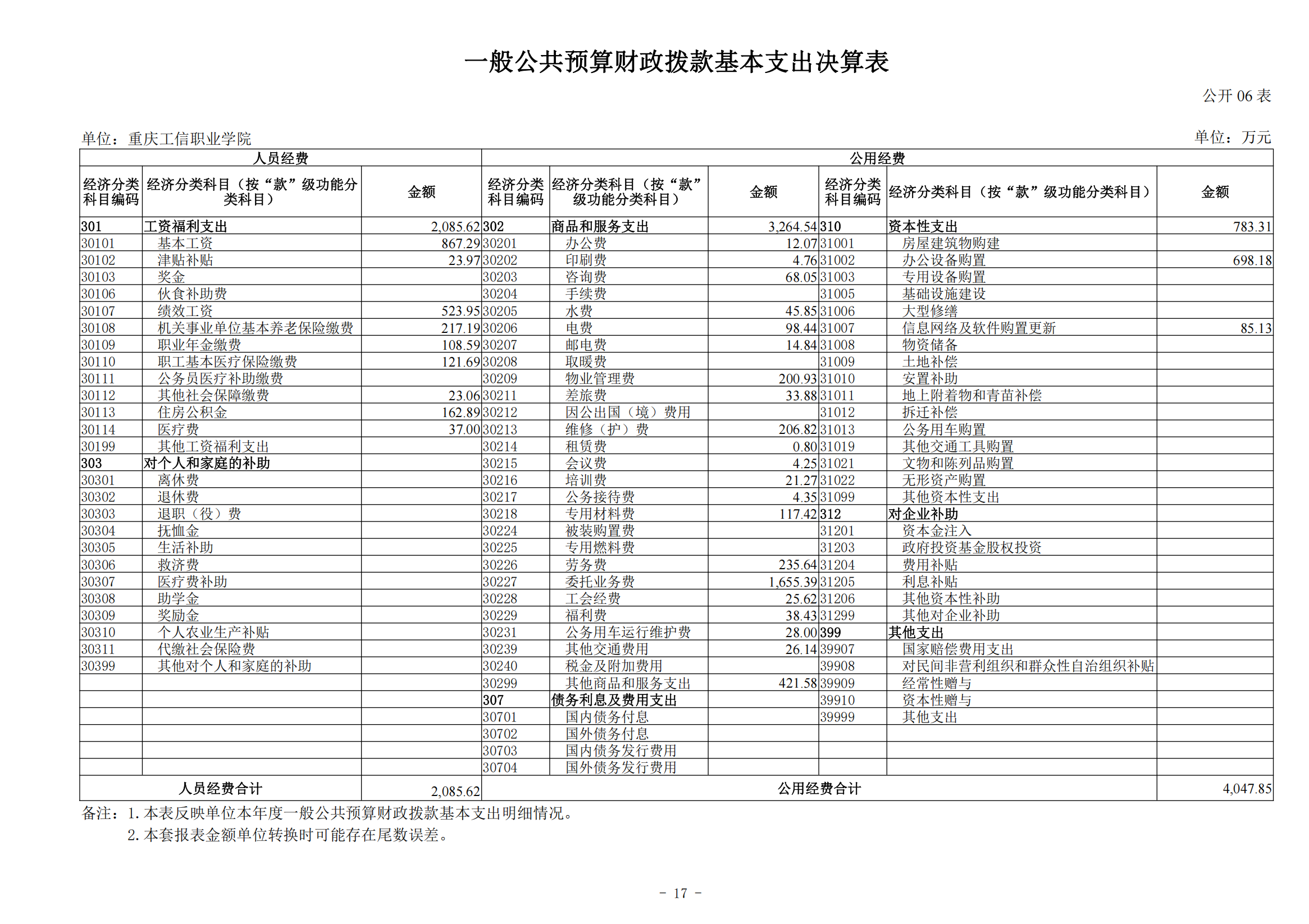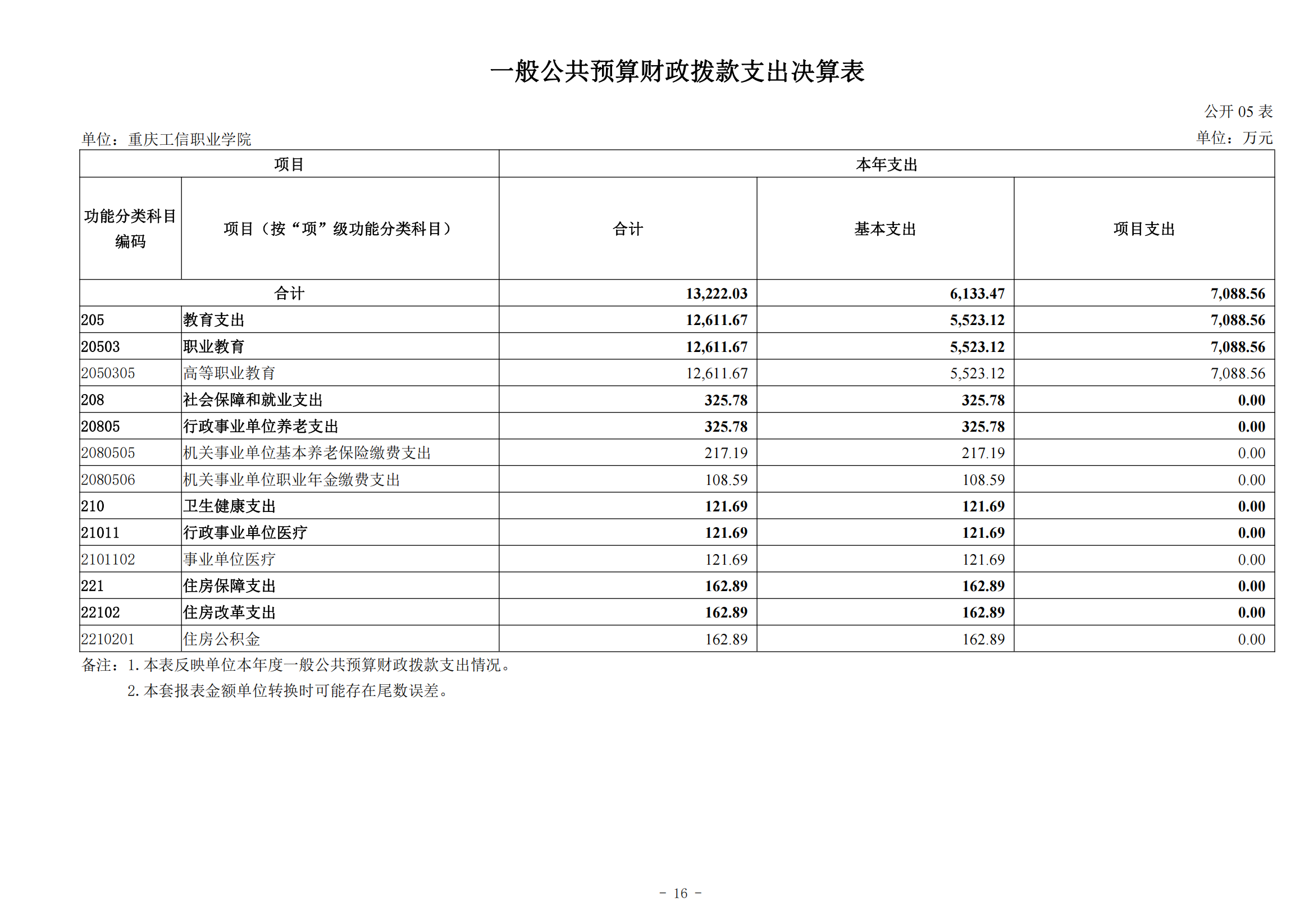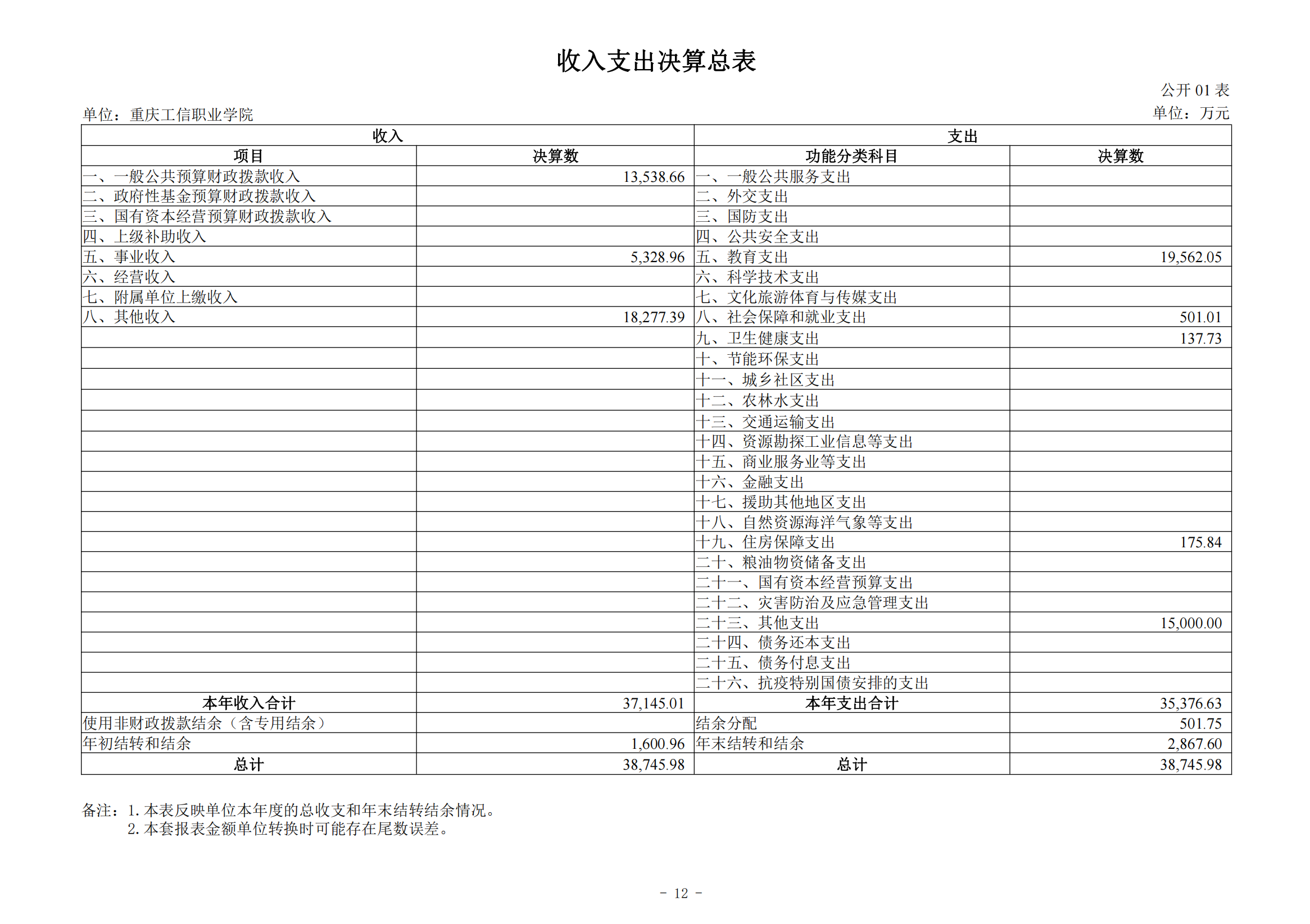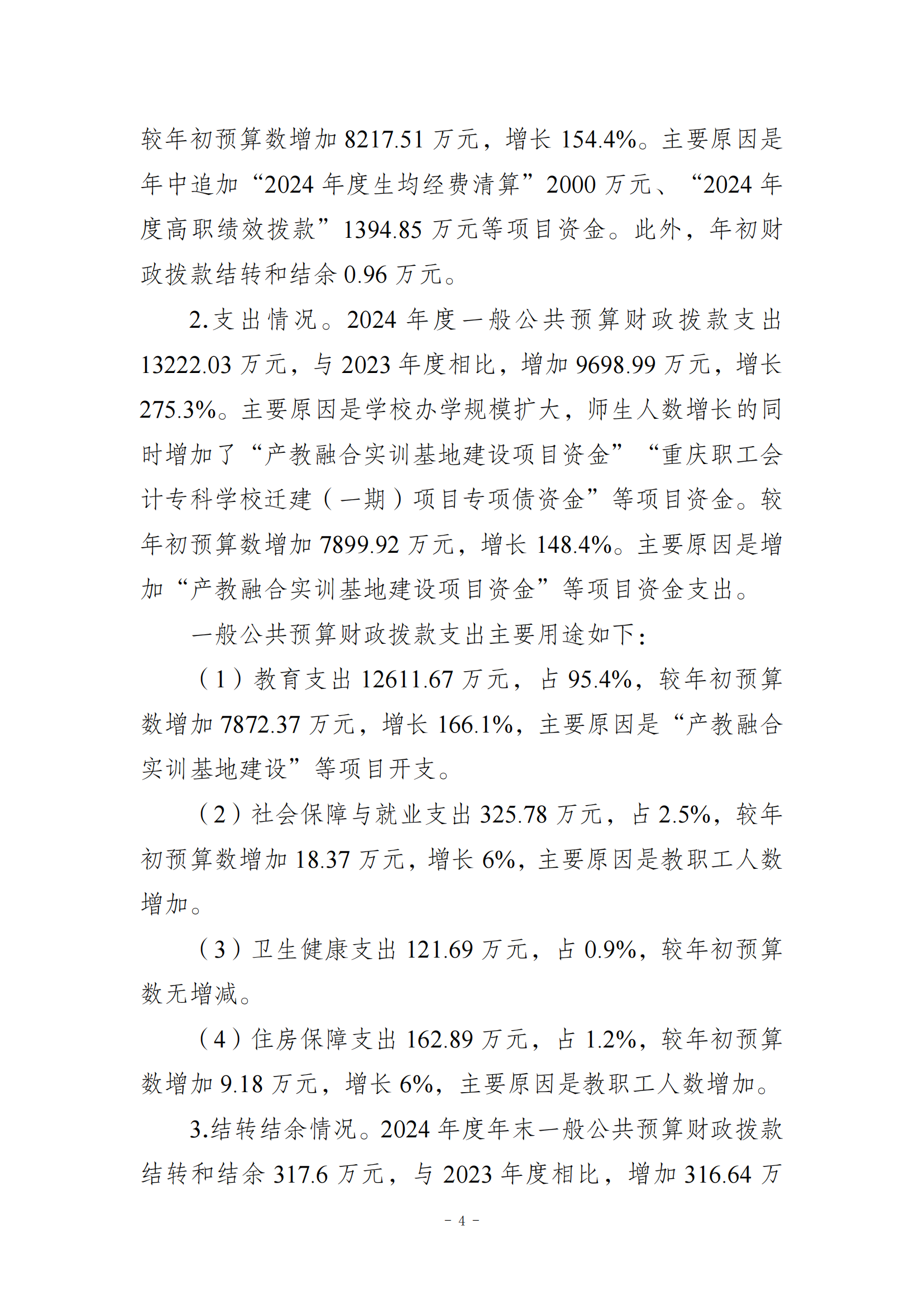 重庆工信职业学院2024年度决算公开说明