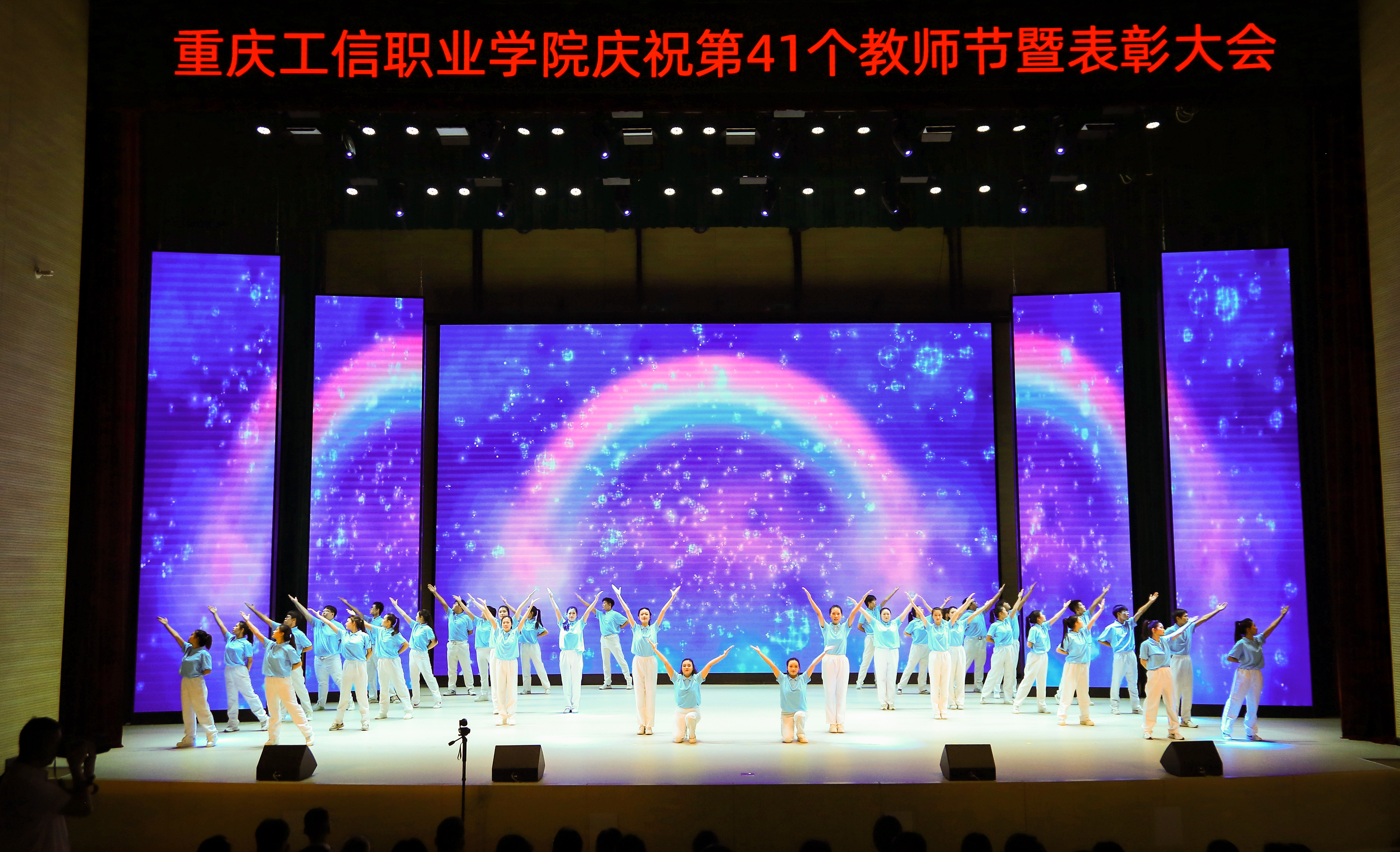 学生代表带来歌舞表演《追光筑梦》,表达对老师们的衷心祝福。