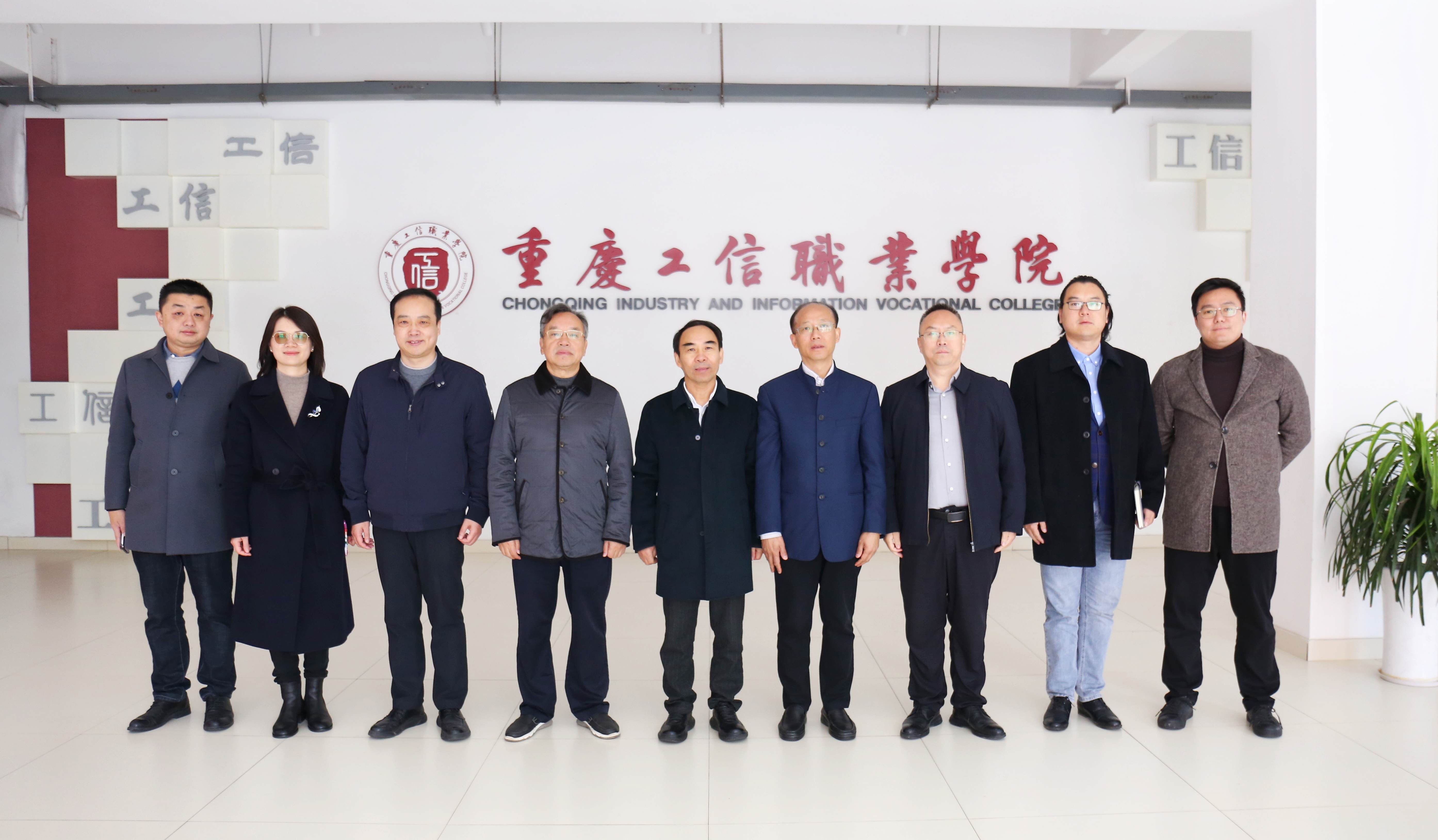 11月19日,上海合作组织国家多功能经贸平台教育工作联盟主席、重庆市教育国际交流协会会长、重庆市教委原一级巡视员邓睿,重庆市教育国际交流协会监事长、重庆市教委原二级巡视员胡斌一行6人莅临重庆工信职业学院长寿校区调研交流,双方围绕“双高”建设,提升国际化办学质量展开深入研讨。学院党委书记高明,党委委员、副院长柴彬堂,党委委员、副院长阮仁全及相关院部负责人陪同参观并参与座谈。